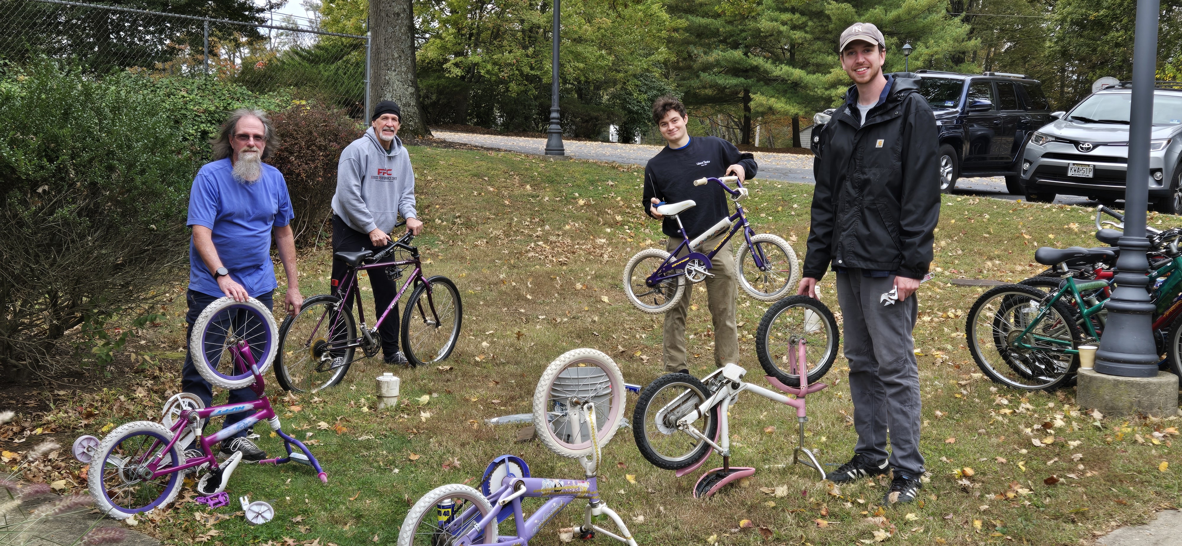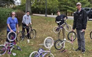 Daryl Detrick with the Warren Hills HS Computer Science Club: 112 bikes and 37 sewing machines collected